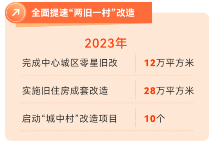 落实“两旧一村”改造实施意见和支持政策,优先将零星旧改、小梁薄板房屋改造以及中心城区周边和五个新城等区域的“城中村”纳入改造计划,2023年完成中心城区零星旧改12万平方米,实施旧住房成套改造28万平方米,启动“城中村”改造项目10个。支持刚性和改善性住房需求,落实临港新片区、五个新城人才住房支持政策,满足房地产企业合理融资需求,保持土地平稳供应并优化结构,确保房地产市场平稳健康发展。