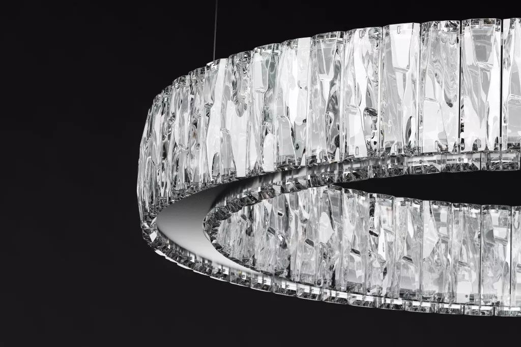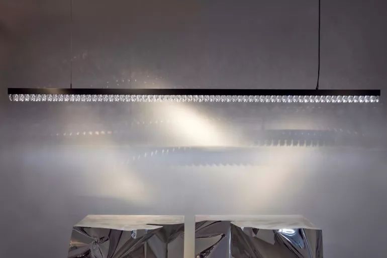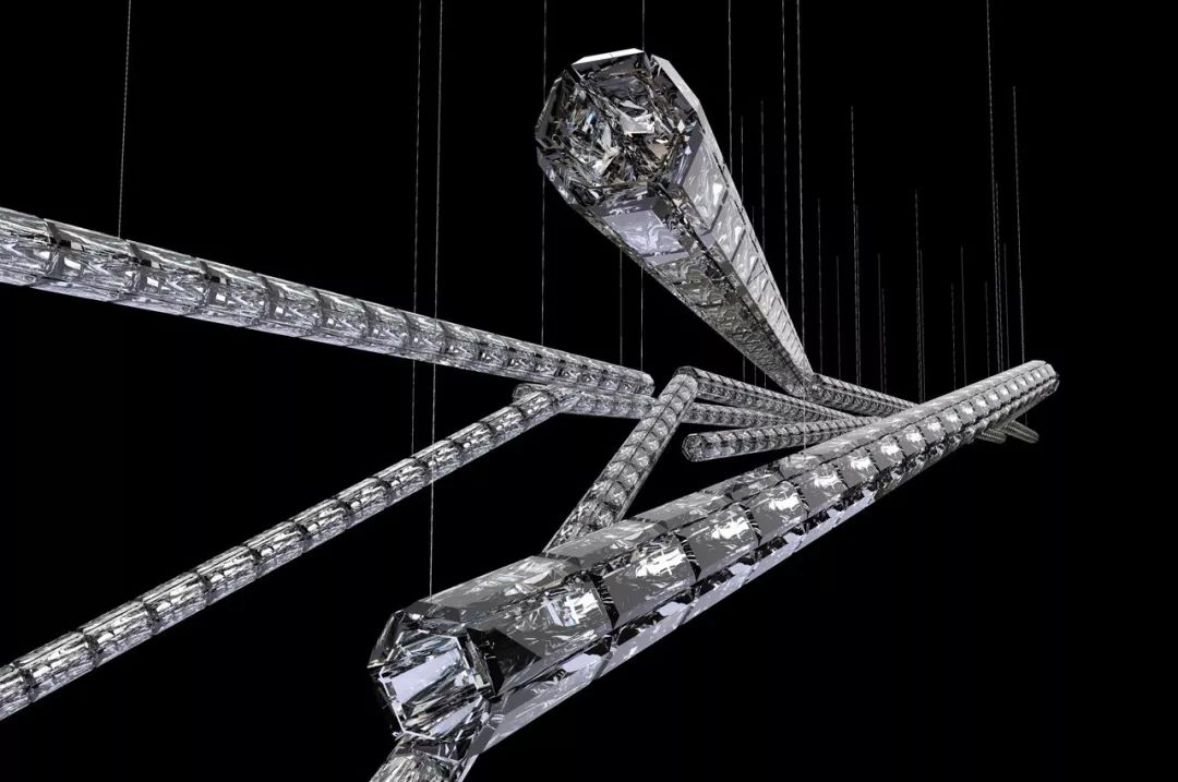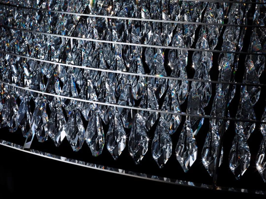 施华洛世奇的仿水晶晶体成对排列,少许的重叠让它们相互反射,增加了光的纵深感,让观者能够获得多重视觉体验。