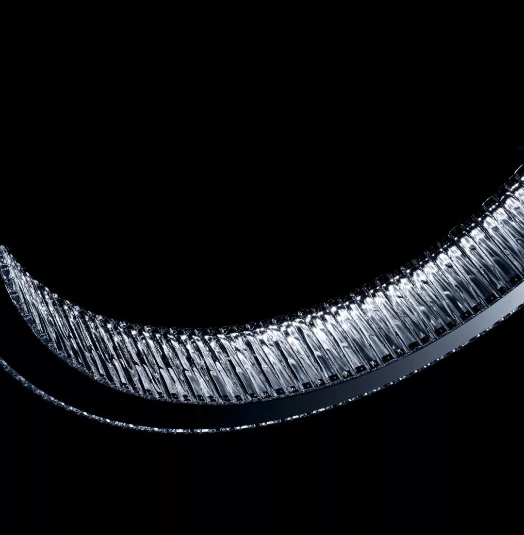 Superline 利用仿水晶模拟的冰柱线条,它们轻轻地贴着“屋顶”的边缘。