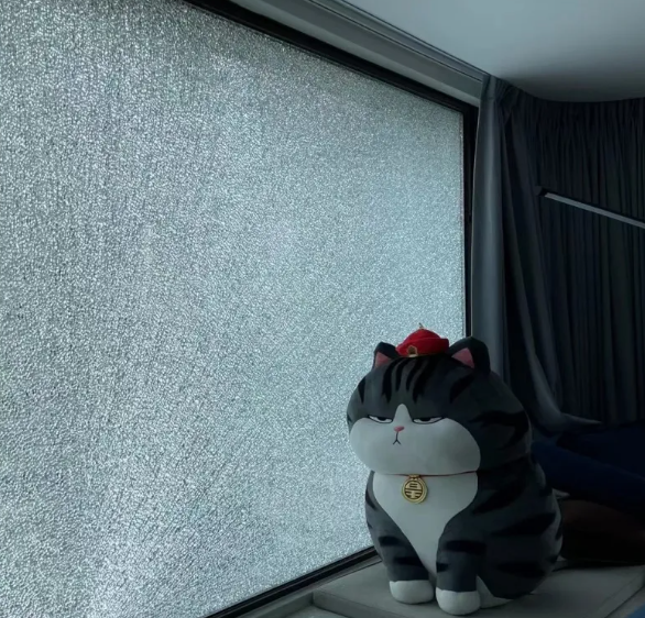 交房半年不到,中企滨江悦府一栋楼里已经有三户玻璃破碎,至今没有更换。