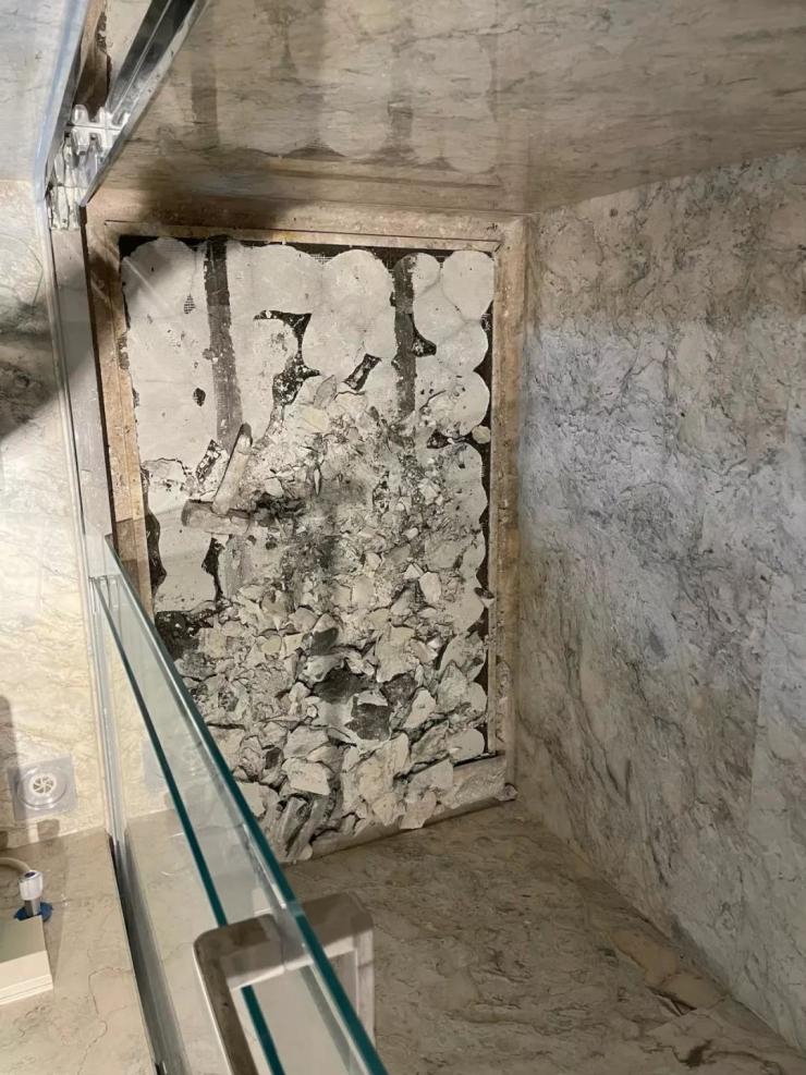 还有一些问题包括交房时墙纸壁纸鼓包、开裂,厨房止回阀不够长导致油烟弥漫,淋浴房反碱严重、异味弥漫,外加防水不到位导致漏水到楼下衣帽间,多处大理石布满红筋疮疤,金属条多处已经磨损,地漏堵塞……