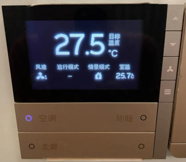 另外,空调智能面板说明书上写着可以人走近面板亮,人离开面板灭,但是因为开发商使用的软件非原产,导致面板常亮,晚上睡觉就像开了夜灯,影响睡眠,业主只能拿东西遮住面板。