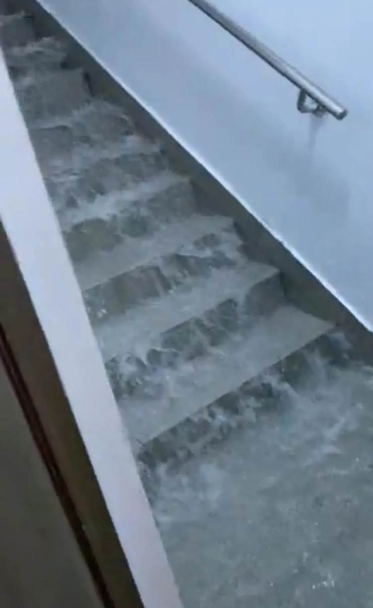 全楼的设备阳台长时间漏水,年初顶楼的消防水箱爆裂,导致大水从楼道冲刷而下,业主被困在进水的电梯间。如今在台风“烟花”到来之际,不知道中企滨江悦府的业主可好。