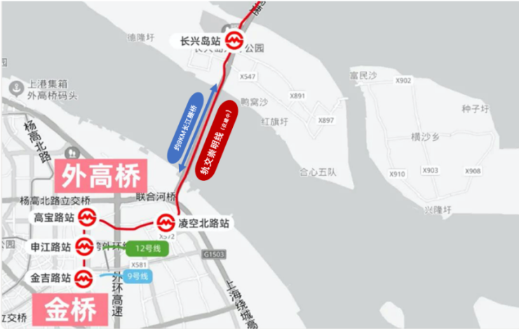 崇明线开通后,将改善长兴岛的交通便捷度,未来地铁出发,1站入浦东,4站到金桥城市副中心,三四站就能便捷换乘12号线、9号线,自此链入上海市域轨交网络,畅达全城。