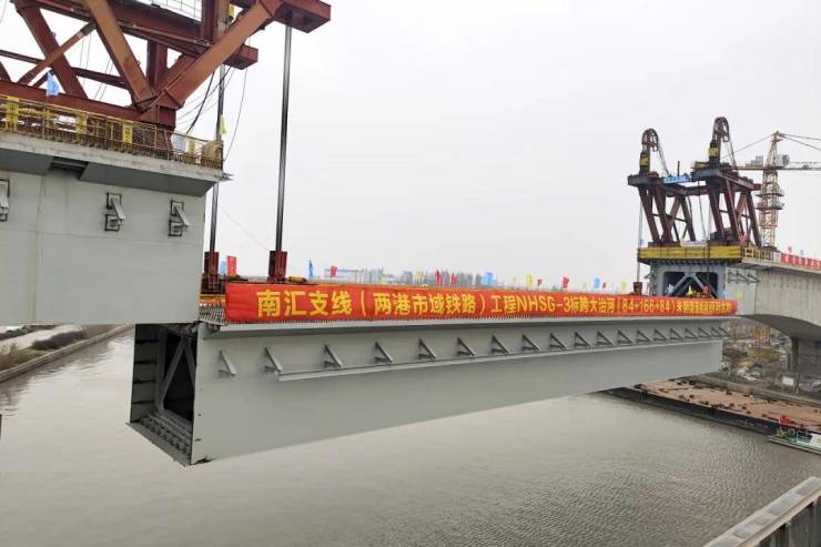 近期,随着最后一节重达563吨钢箱梁缓缓提升就位,南汇支线3标跨大治河主跨166米钢混连续梁顺利完成合龙,为后续预制梁架设连续施工奠定坚实基础。