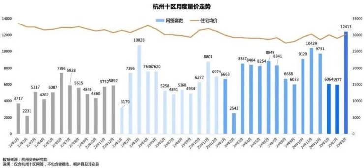 二手住宅环比上涨城市有10个,比上月增加7个。其中,杭州以1.0%的环比涨幅位居70城之首。杭州贝壳研究院统计数据显示,3月,杭州市区二手房累计网签12413套,成交量较2月的5977套增长108%,同比增长45%,创下杭州近8年来新高。其中,成交量前20的小区中,有一半小区的成交均价在4万元/平方米以上。