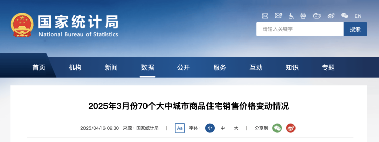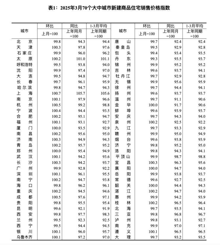 4月16日上午,国家统计局公布《2025年3月份70个大中城市商品住宅销售价格变动情况》。今年3月,住房市场成交活跃度提升,70个大中城市中,一线城市商品住宅销售价格环比上涨,二三线城市环比总体降幅收窄;各线城市同比降幅均继续收窄。