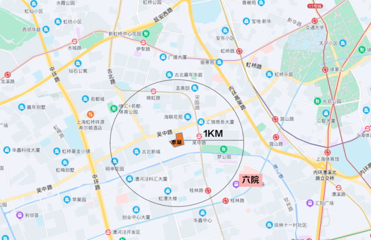 医疗资源:上海第六人民医院和上海嘉会国际医院分别位于项目的东南和西南侧,直线距离均1.1km;