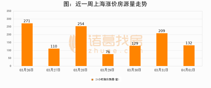 根据诸葛找房数据显示,上海24小时涨价房源量为132套,较03月31日减少77套,环比下降36.8%。与此同时,涨价房源占比小幅回落,对于购房者来说是一个入市窗口期,购房者可抓住时机入市。