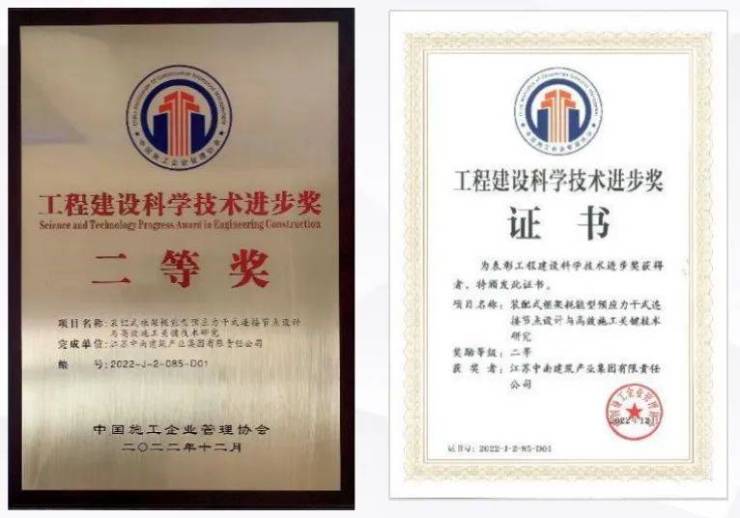 “装配式框架耗能型预应力干式连接节点的设计与高效施工关键技术研究”为2018年江苏省重点研发计划—社会发展项目,2021年11月顺利通过了江苏省科技厅组织的项目验收。2022年5月由江苏省建筑行业协会组织了科学技术成果评价,成果整体达到国内领先水平。