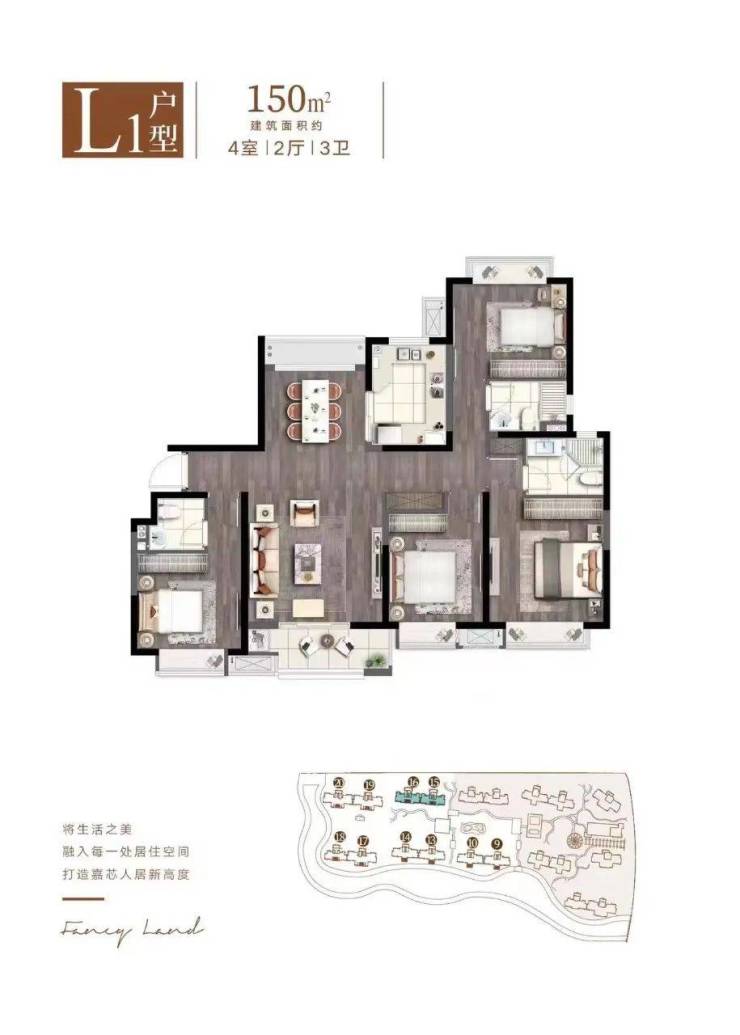 约150㎡ 4房 2厅 3卫 共100套