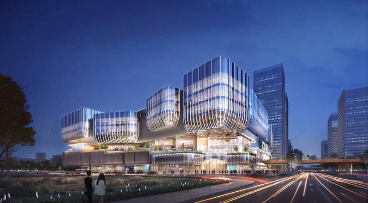 华之门购物中心项目负责人叶挺介绍,项目建成后将为上海南部新增约19万平方米的商业面积,打造包含游乐场、水景花园、移动图书馆、演艺舞台、景观绿廊、艺术展廊的体验式购物空间。聚焦华泾镇的黄道婆纺织文化,商场布置也将引入纺织中的裁剪、棉朵等元素,展现华泾悠久的人文历史。