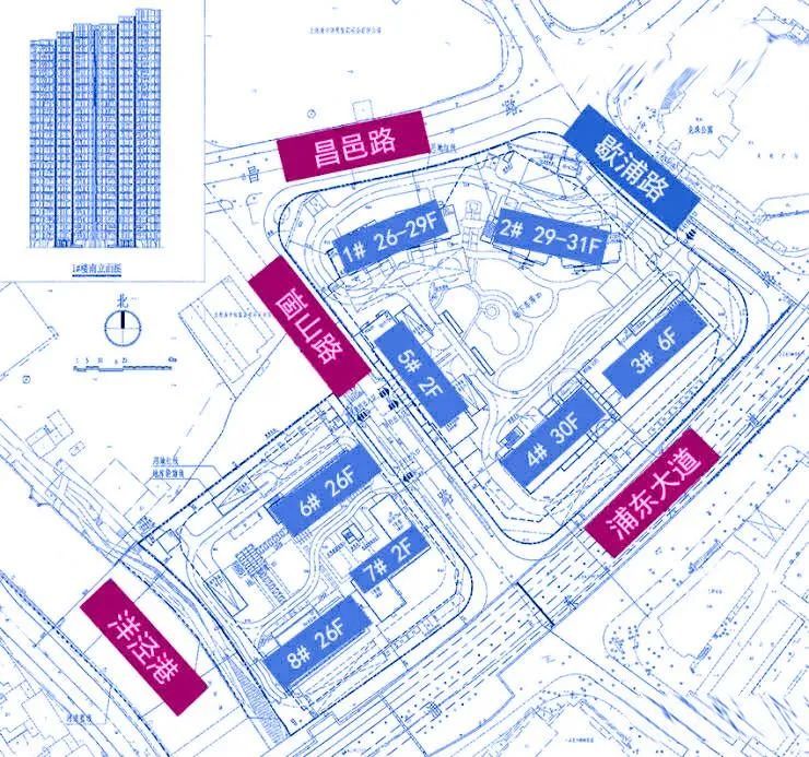 其中住宅部分1#2#8#三栋楼。1#为26-29层、2#为29-31层、8#为26层,这三栋楼已经接近结构封顶。