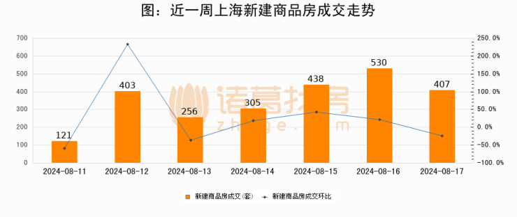 【上海成交日报】08月17日新房成交407套;涨价房源138套