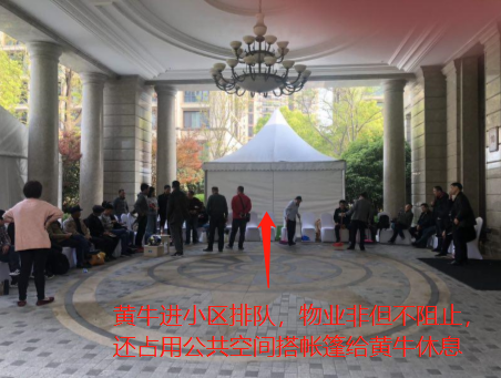 果不其然,在开盘前2天,就有黄牛代排队。然而开发商对此举并未阻止,甚至借机鱼目混珠,壮大排队队伍,清明期间搭建白色休息棚供其休息。刻意制造恐慌抢购,这其中,利益的“味道”清晰可嗅。