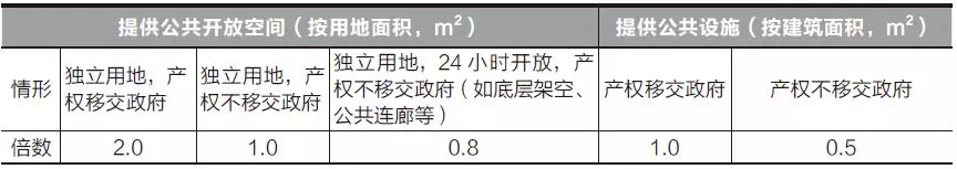 上海试图通过“契约式”管理,在城市更新中通过建立激励政策加大对开放空间、公共服务设施的提供力度,并保证城市更新项目的公共要素得到落实。在城市更新区域评估阶段明确的更新单元公共要素包括城市功能、文化风貌、生态环境、慢行系统、公共服务配套设施、公共开放空间等。在实施计划阶段,以公共利益为导向的政策激励明确提出:能够提供公共设施或公共开放空间的建设项目可适度增加建筑面积,但面积调整一般不超过规定设定的上限值(表 2);能够同时提供公共开放空间和公共设施的建设项目可以叠加给予建筑面积奖励;在更新单元内部可以进行地块建筑面积的转移补偿;符合历史风貌保护的更新项目,新增要求保护的建筑、构筑物可以不计入容积率的计算值等。