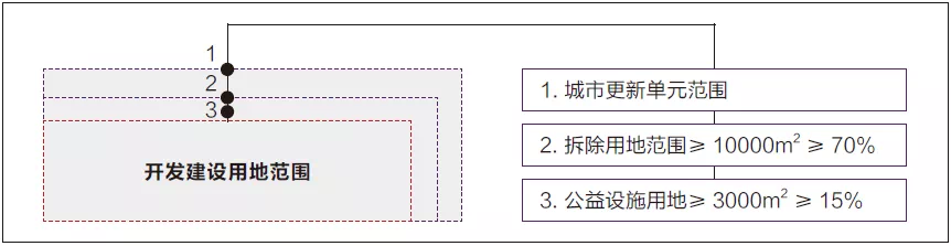 (5)移交公益用地,保障城市公共利益。为了更加公平地分配地段更新过程中产生的新收益,深圳要求城市更新单元范围内的土地在拆除整理后,应移交一定比例的公益用地给政府用于建设基础设施、公共服务设施。移交的公益用地面积应大于3000m2,不小于拆除重建范围用地面积的 15%(图 12)。