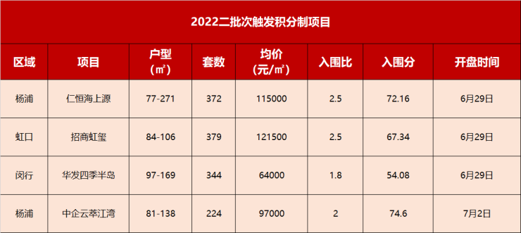 一,二批次中,碧桂园柏悦前湾、葛洲坝玉兰花园、仁恒海上源、招商虹玺、华发四季半岛、中企云萃江湾已触发积分。