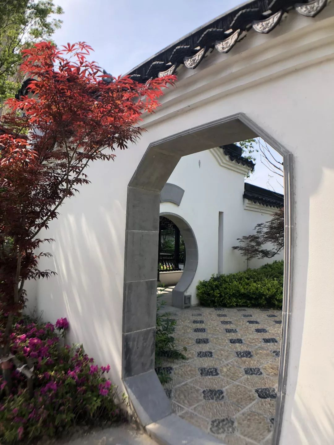 洞门是园林艺术里一大瑰宝。采取不同角度交错布置园墙、洞门,在强烈的阳光下会出现多样的光影变化,呈现别样风景。