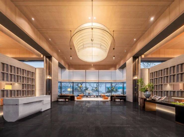 约50米宽的迎宾楼以现代建筑语言勾勒出社区大气的城市界面,挑高约8.8米的酒店式大堂融合光与影的艺术,构筑起归家途中的第一重礼序,彰显出金茂产品一贯的非凡气度。