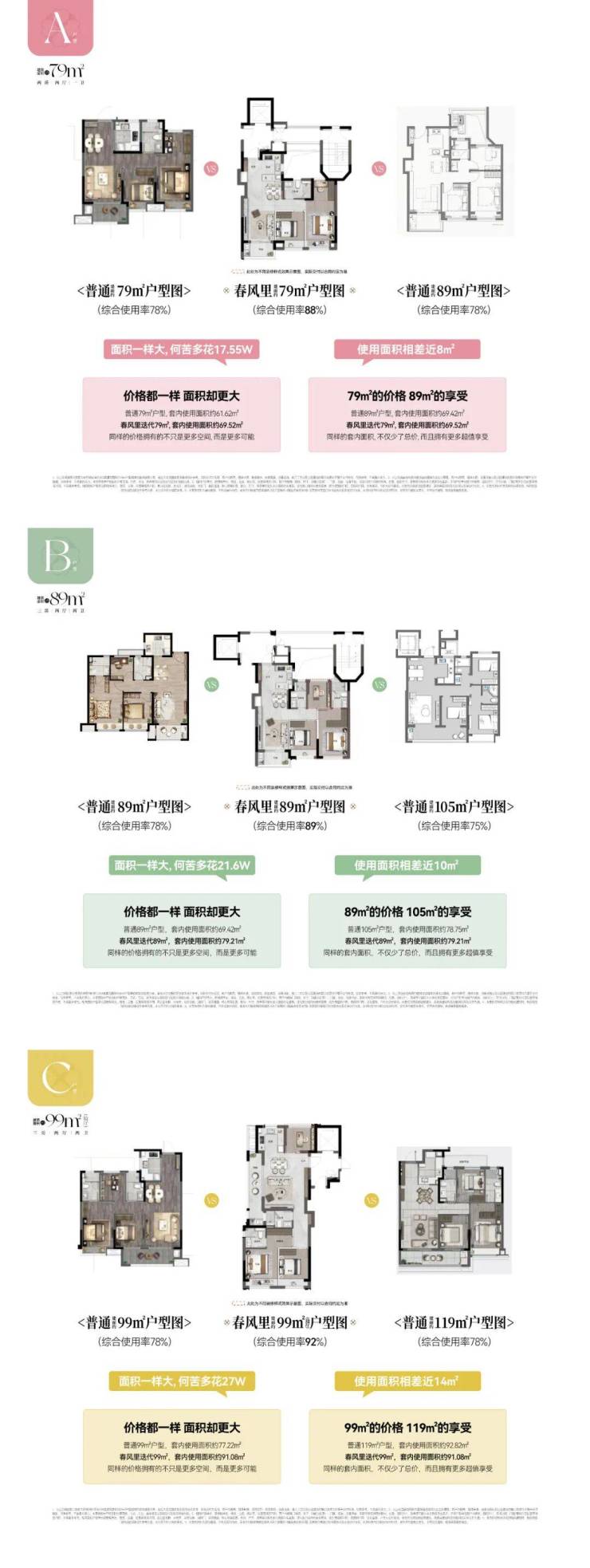 创新户型:79㎡折叠舱和89㎡VHF立体舱 以空间哲学重构生活维度户型设计是本次春风里产品的核心亮点。项目积极响应建筑新规,深度融合超维空间、3米层高、创新S墙及LDK一体化设计等前沿理念,实现全户型平均约90%的超高使用率,远高于市场平均水平,为业主带来实实在在的空间价值提升。
