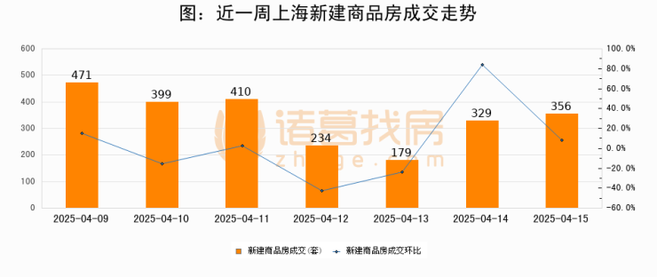 【上海成交日报】04月15日新房成交356套、二手房826套;涨价房源206套