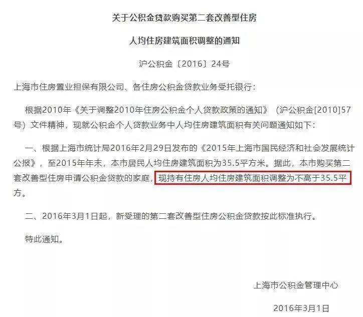 同日,上海市公积金管理中心发布《关于公积金贷款购买第二套改善型住房人均住房建筑面积调整的通知》,利用公积金购买二套改善住房的,提高了现有人均住房面积限制。