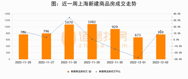【上海成交日报】12月02日新房成交769套;涨价房源173套