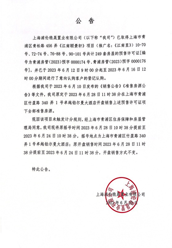 2022年9月,双方携手以9.509亿元竞得青浦区夏阳街道青松路西侧H3a-01、H3b-01纯宅地,即江南里所在地块,溢价率约7.09%,成交楼板价约24225元/平方米,地块房地联动价50000元/平方米,这也是南通亚伦首次进军上海住宅市场。
