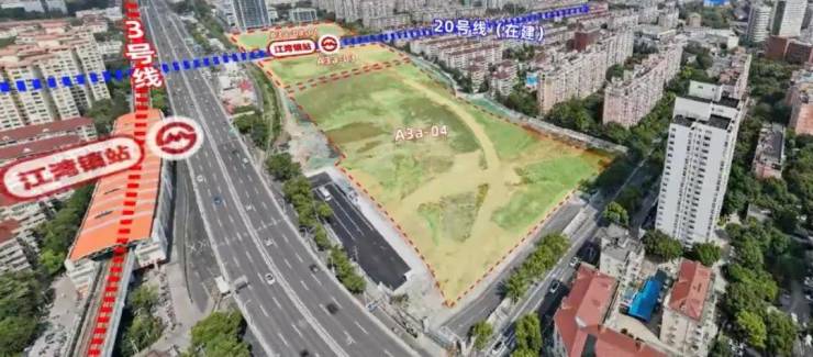 该地块原为钢材交易市场,经城市更新转型为住宅用地。西侧紧邻逸仙路高架及3号线江湾镇站,未来可同站换乘20号线(在建),距18号线上海财经大学站约1公里,形成“三轨交”覆盖。