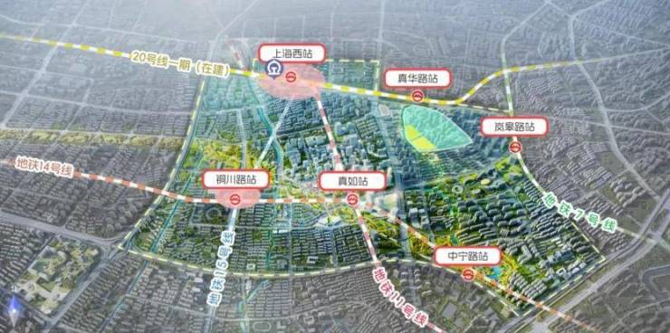项目周边轨交网络发达,1公里范围内涵盖7、11、14号线及在建的20号线。商业配套完善,紧邻真如境综合体,涵盖剧院、山姆会员店、环宇城等多元业态。整个真如翠谷片区以“国际视野、生态共享”为规划目标,旨在打造立体复合、活力精致的创新宜居社区。