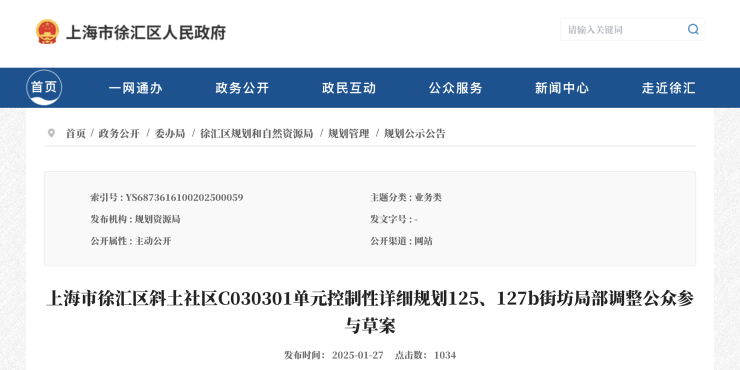 近期,斜土社区C030301单元控制性详细规划125、127b街坊局部调整公众参与草案已经在徐汇区官网公示。