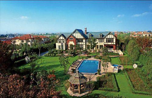 项目共规划了150多栋别墅, 每户平均占地都在8亩以上,这在寸土寸金的魔都简直奢侈到爆。建筑设计也十分讲究,设计师来自日本、意大利、 美国、澳大利亚、新加坡5个国家,建材全部从世界各地采购。