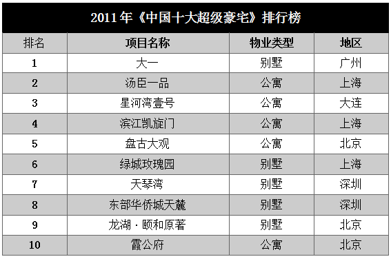 2009年,魔都登上《中国十大超级豪宅》榜的3个楼盘,全部都是高层住宅!除了汤臣一品外,另外两个是世茂5号和王子晶品,分别处于第8和第10位。