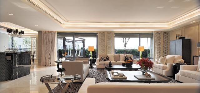 样板房更是联合奢侈品牌范思哲打造,2500万的装修成本,一扇铜门就价值80万,所有厨卫品牌都是世界较高档的。而站在汤臣一品的阳台上傲视整个上海滩的那种优越感,更是妙不可言。