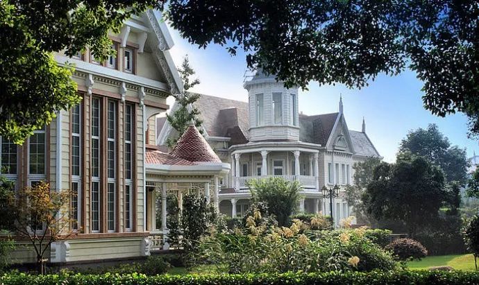 每栋别墅的风格也都不一样,包含了古典复兴风格,英国亚当风格,英国乔治亚风格,地中海风格,法国古堡风格,巴黎学院派风格以及英国都铎等多种建筑风格。