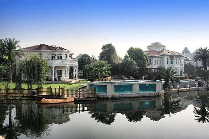 项目景观整体以水景、森林、ATP、泛高尔夫为四大元素构建,借鉴了上海石库门建筑的整体园林。三大天然水系,分割出数个私密岛屿,户户临河而筑。其中位置较好的别墅总价高达2亿!