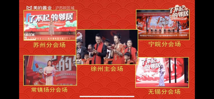 去年春节,美的置业沪苏皖更是依托橙意社群打造首届业主春晚会,来自宁皖、无锡、徐州、苏州、常镇扬等地的美的置业业主,以各类才艺形式登台, 相声、戏曲、鼓乐演奏、乐队串烧、诗朗诵、魔术、古筝演奏、太极拳等多种艺术形式轮番上演,彰显出美的置业社区生活的丰富度和多样性。