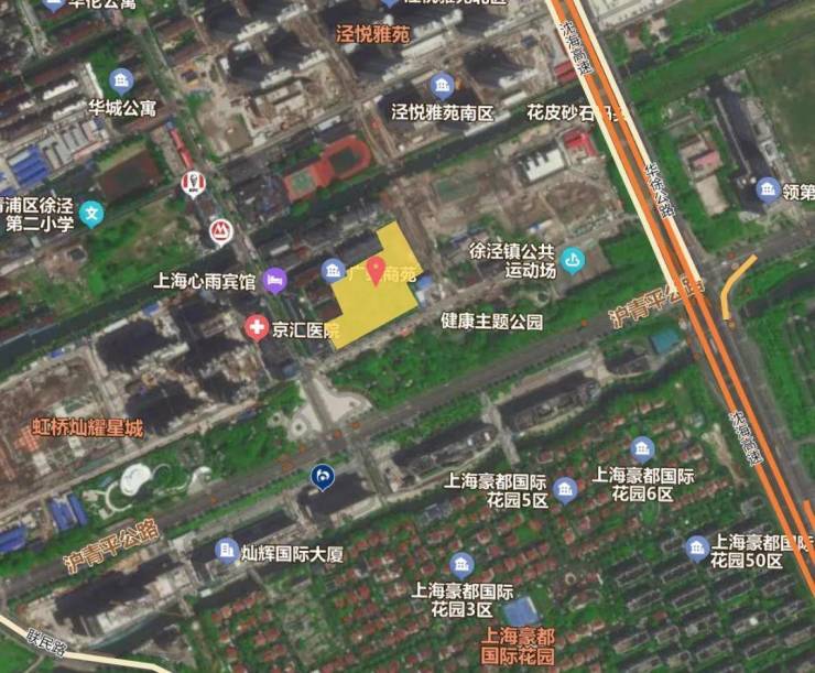 本地块是灿辉在徐泾镇摘得的新地块,西部距离地块400米处为虹桥灿耀星城,由于股权变更,项目名称改为虹桥灿耀星城,目前第三期在售。该项目是新徐泾城实业于2020年至2021年间所竞得的3宗住宅地块,总金额28.9亿,楼面价为28000元/㎡。