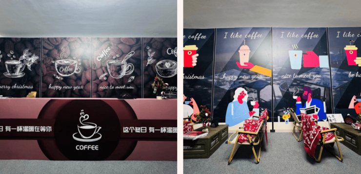 热咖啡持续供应,冬季限定拉花,用咖啡热饮为游客呈上暖意。