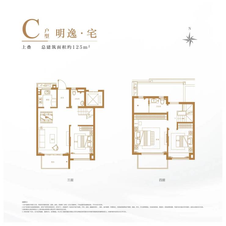 1.本户型图仅作展示之用,样板间内装饰用材、家具、家电、软装等(如有)仅为示意参考,不构成要约和销售承诺,不作为交付标准。2.本户型面积为房屋预测面积,相同户型单位结构形式、空间尺寸、局部细节(包括但不限于层高、开间、进深、窗扇面积等)、面积、室内装修、空调机位、内保温范围等由于楼栋、楼层、单元、外立面等差别,本身的结构柱、管道井、结构梁等因素,可能与本次展示存在差异,具体以实际交付为准。3.具体情况以政府审批及《上海市商品房预售/出售合同》等相关约定为准。 4. 本项目推广名为:长兴金茂逸墅,备案名为:金茂雅庭。本公司上海崇茂置业有限公司在法律规定的范围内对本物料保留修改和解释的权利。本物料制作时间为2022年6月。