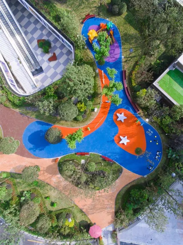 孩子們在冠大蔭濃的樹木下奔跑嬉戲,而林下豐富多樣的植物激發了孩子們的好奇心,引起了孩童對大自然的關注。