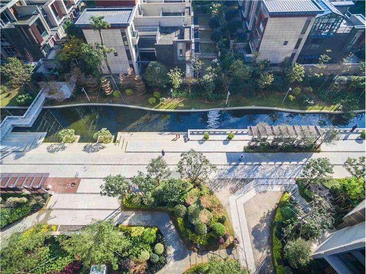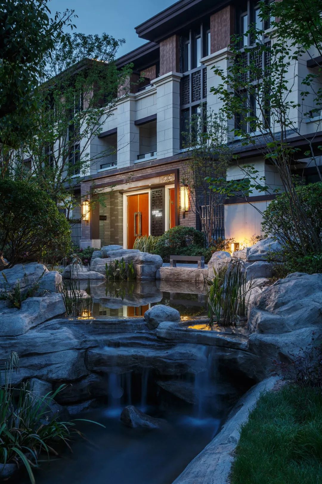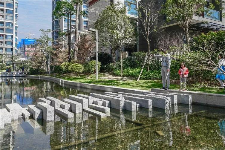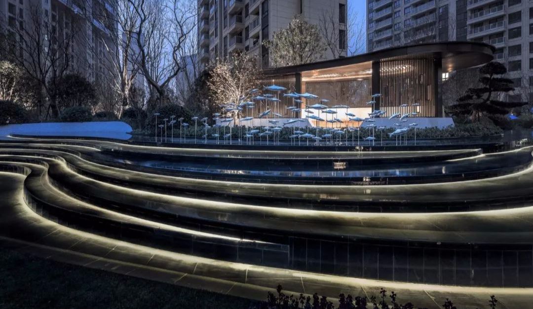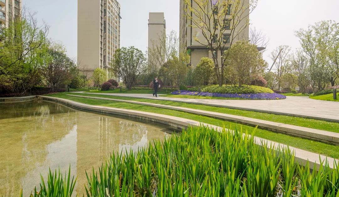 於是設計師以此背景藍本,將 “水”元素在景觀設計中再次昇華,從門口迎賓開始,直至回家的路上都有水景相隨,草長鶯飛之間,好似將京杭運河那秀麗壯觀而四通八達的水脈濃縮為一副袖珍的畫作。