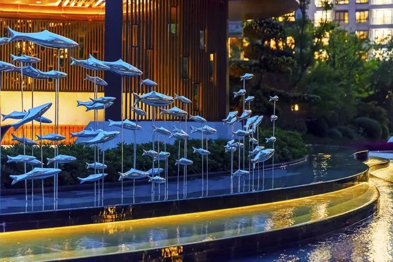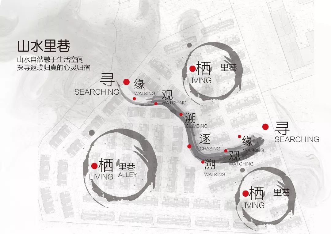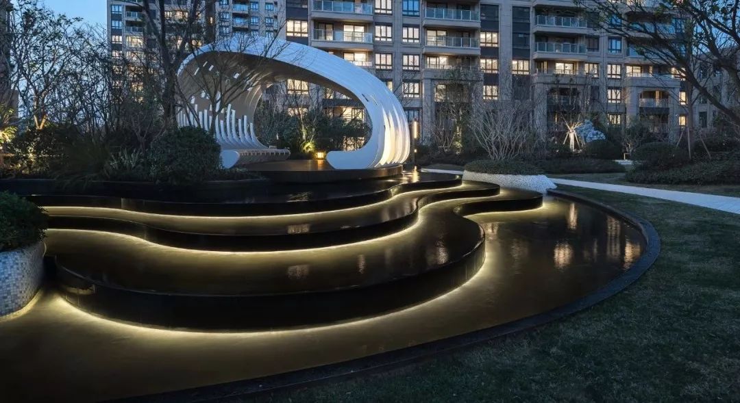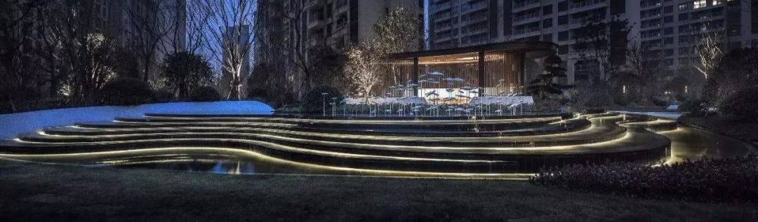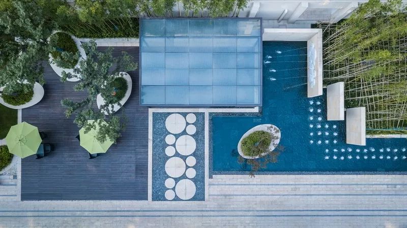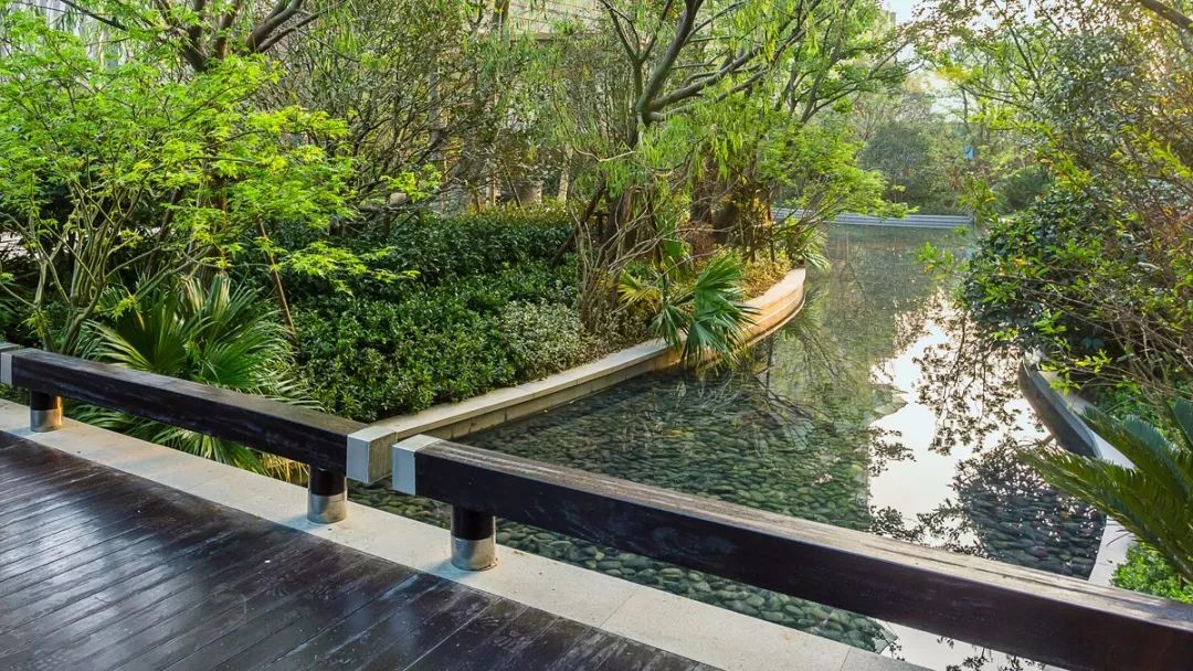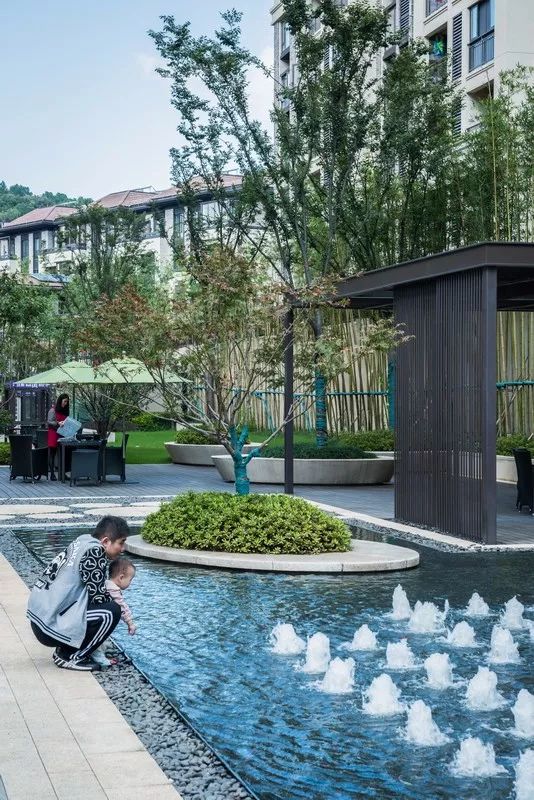 於是設計師以此背景藍本,將 “水”元素在景觀設計中再次昇華,從門口迎賓開始,直至回家的路上都有水景相隨,草長鶯飛之間,好似將京杭運河那秀麗壯觀而四通八達的水脈濃縮為一副袖珍的畫作。