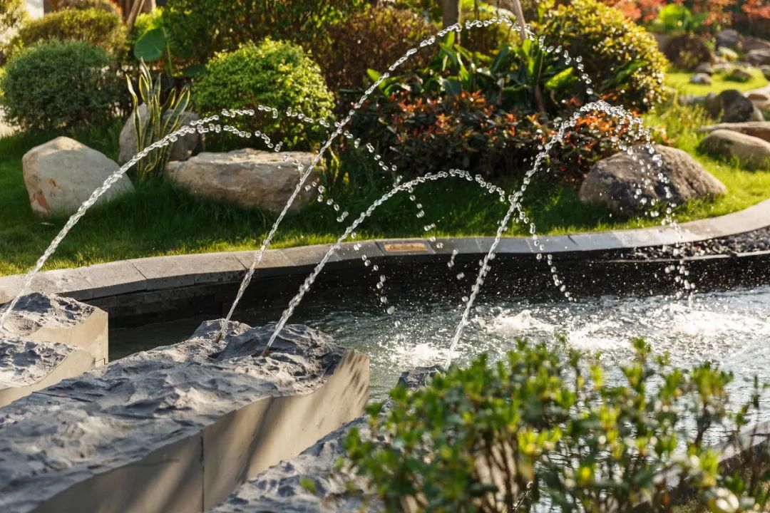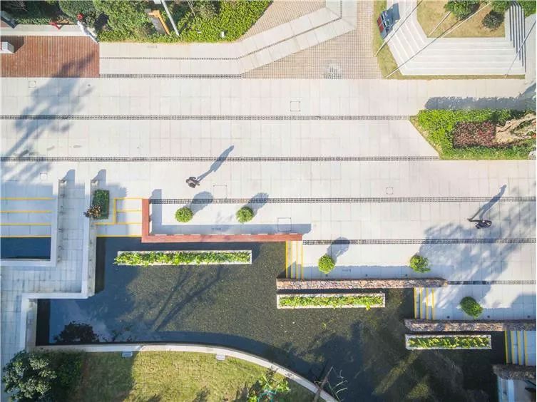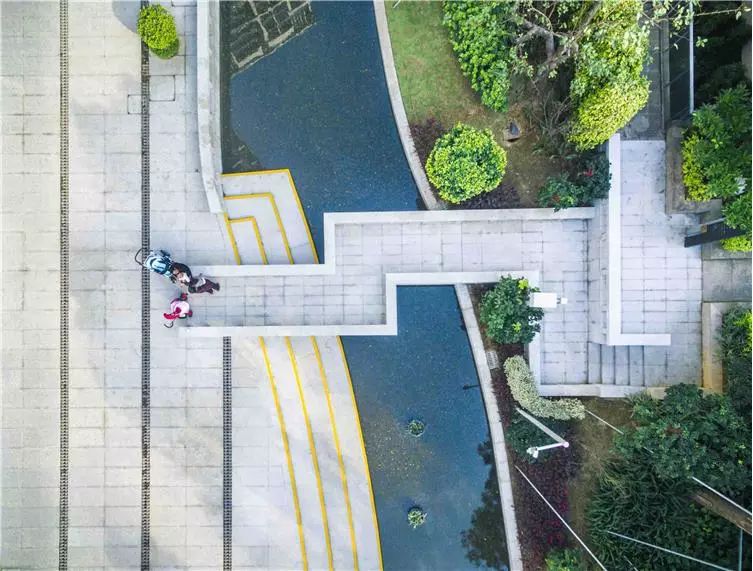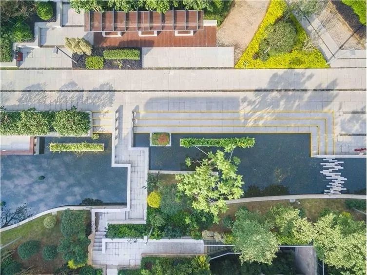 在這自然簡約的園林空間里,消防流線以更為美觀的方式隱藏於潺潺流水與花枝綠草之間。