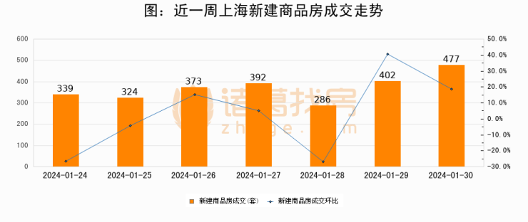 【上海成交日报】01月30日新房成交477套;涨价房源109套