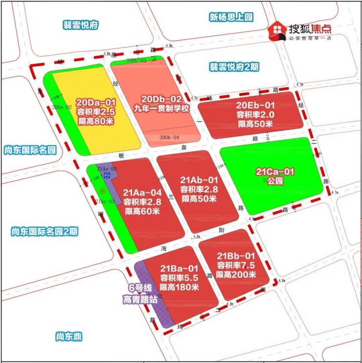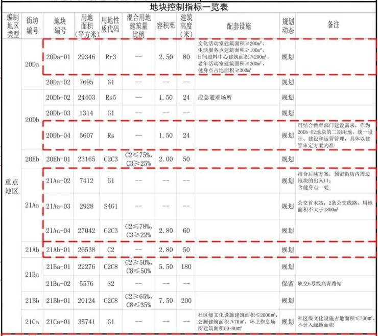 6号线高青路站地铁上盖区域,规划新增两栋地标塔楼。其中,21Ba-01地块占地面积约2.23万平方米,容积率5.5,建筑限高180米;21Bb-01地块占地面积约2万平方米,容积率7.5,建筑限高200米。