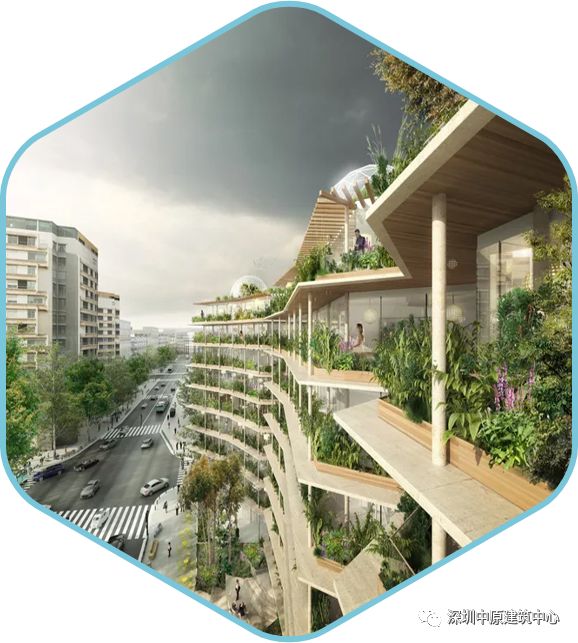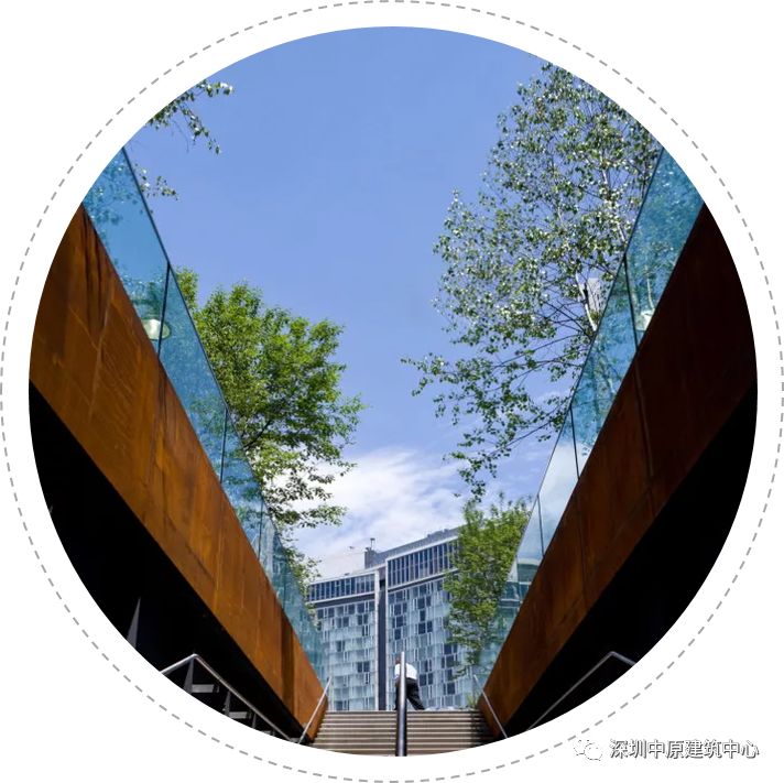 为了达到800米这个“舒适距离”的极限,每个住宅组团到地铁站的道路都尽量走直线。比如如纽约高线公园一样的那条“空中步道”,就是一条对角直线,从住宅组团到购物中心的地铁站台,以此达到最短直线距离。