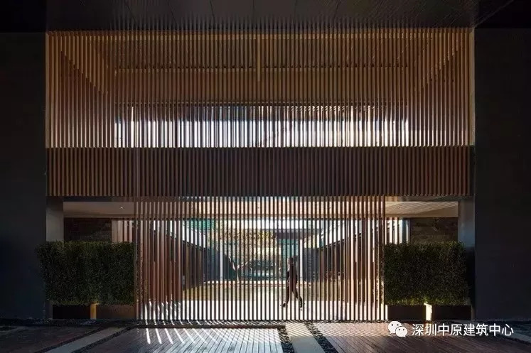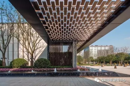 重要节点的部分也在线条的运用中得到了加强,诸如灯、廊架雨篷、地面肌理都在统一的直线条中形成了独特的项目图腾。与传统的纹样不同,这是一种安静的构成方式。
