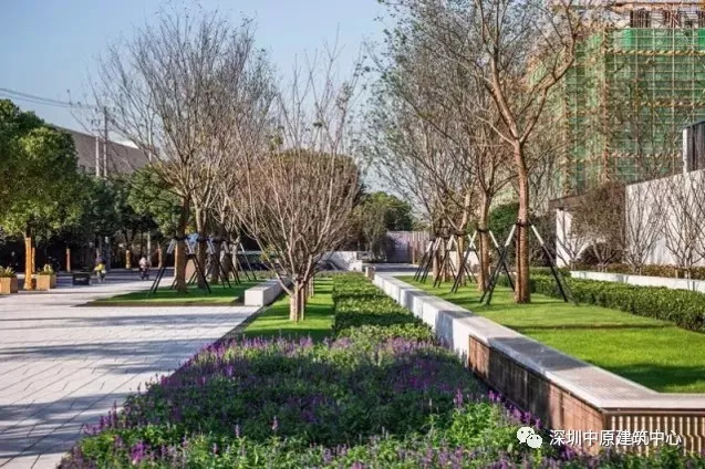步道会种满绿植以及打造一些公共设施。业主每天经过这条步道去地铁站,会经过咖啡馆、小广场、商业街等等,一路遇见不同的场景,几百米的步行距离,变得有趣味,心理距离也同时缩短。